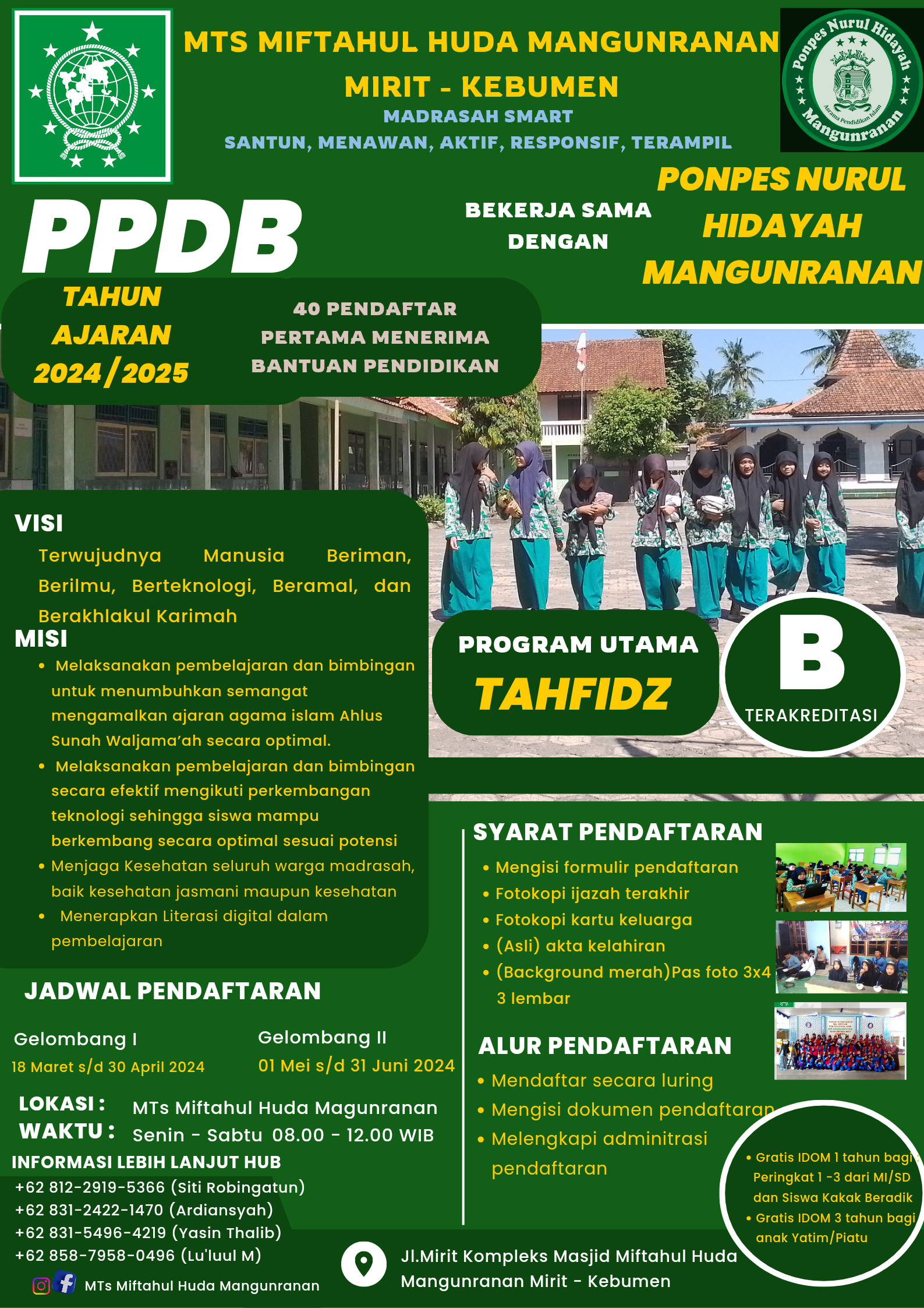 berdirinya MTs Miftahul Huda Mangunranan, kecamatan Mirit, Kabupaten Kebumen