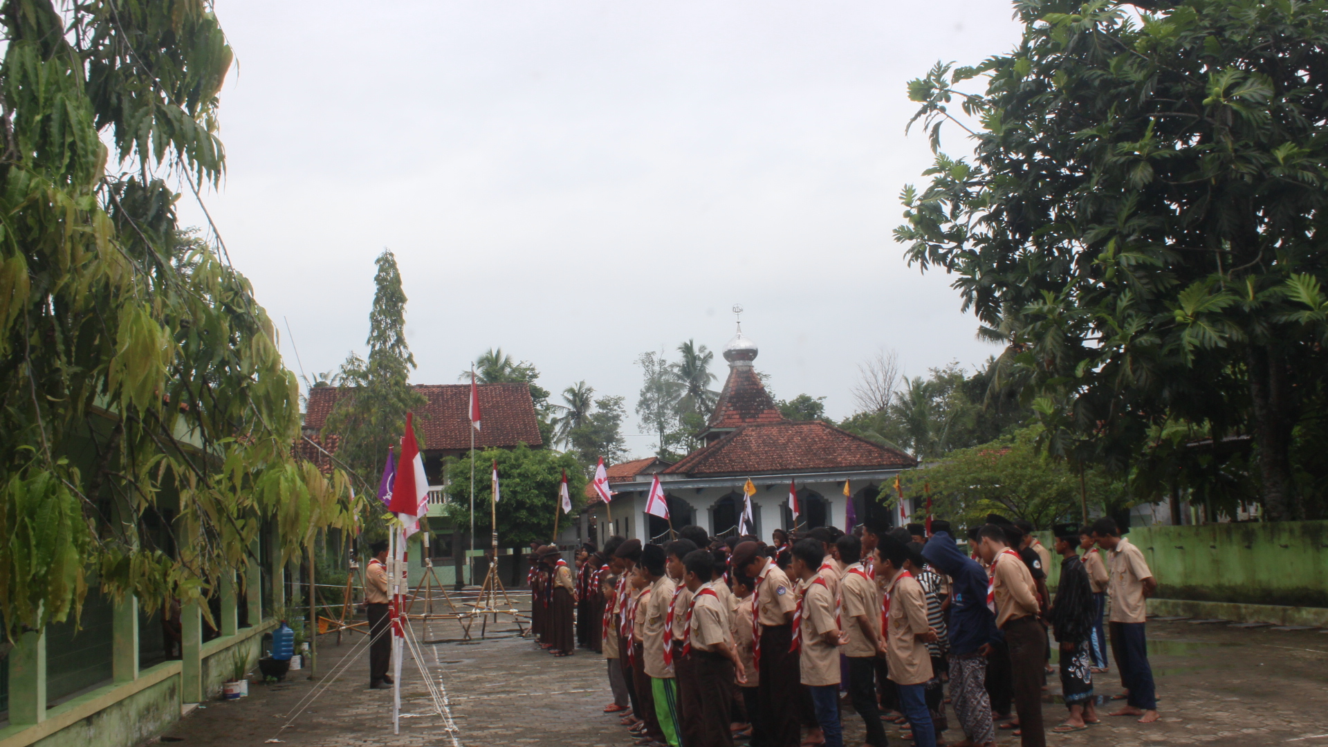 gedung akan tetapi masih berupa perumahan dari kayu, berdinding bambu, serta